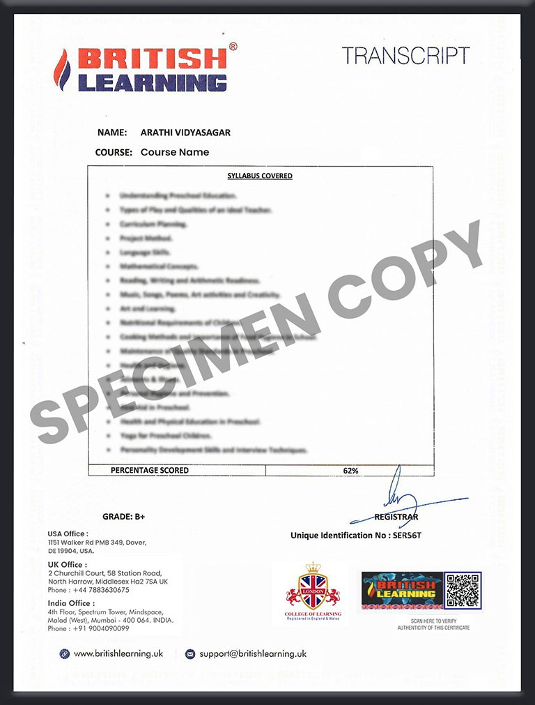 Our reputation stems from offering International Nutrition Certifications, UGC-accredited degree programs through our university partner, Online Teacher Training Courses, and other job-focused training pathways. British Learning is the authorised Vocational Training Partner.